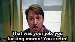 From his own internal monologues, and sometimes right from his own mouth, Mark often loathes Jeremy in a way that is scarcely reciprocated. Jeremy thinks of Mark, at worst, as a “posh spaz”. But Mark goes so far as to give the following dressing-down to Jeremy, when Jeremy says that he failed to buy a turkey for Christmas:
